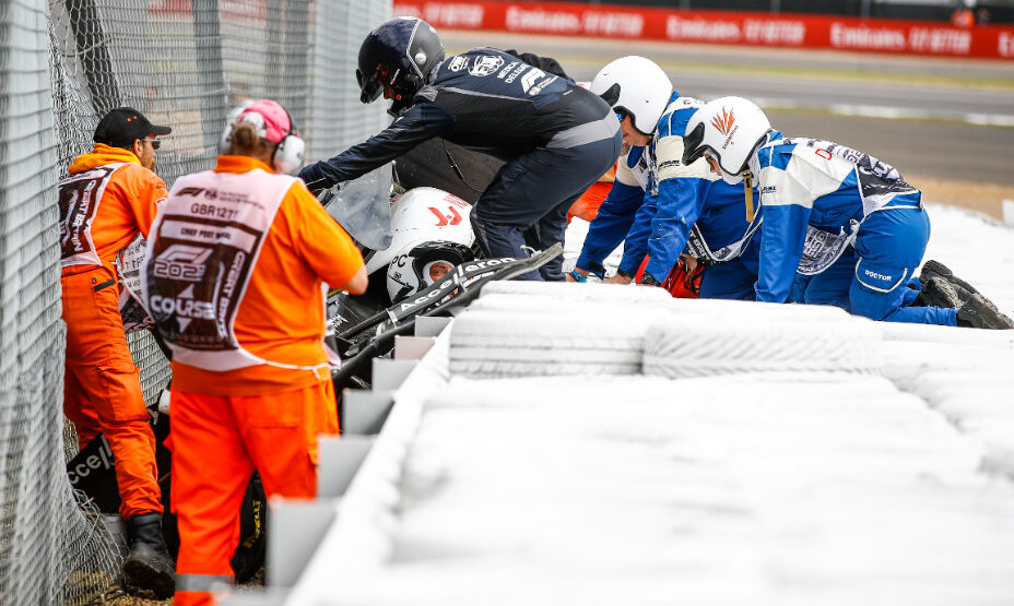 Инцидент случился на старте гонки после крупной аварии с участием пяти болидов, из-за которой заезд остановили красными флагами. Группа протестующих в ярких футболках оранжевого цвета села на асфальт, затем их разогнали маршалы. Ответственность за акцию взяла на себя экологическая партия активистов Just Stop Oil.