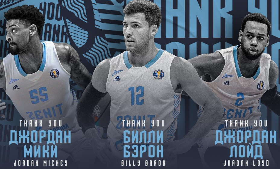 Петербургский баскетбольный клуб «Зенит» на своем официальном сайте объявил о расставании с тремя иностранными баскетболистами. Российски клуб покинули три американца — Билли Бэрон, Джордан Лойд и Джоржан Мики.