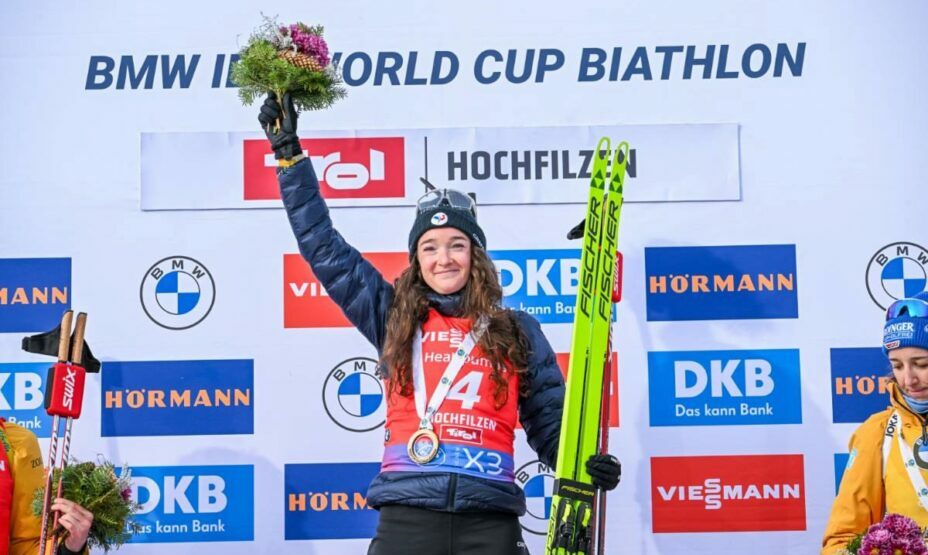 Француженка Лу Жанмонно выиграла гонку преследования на четвертом этапе Кубка мира по биатлону в Оберхофе.