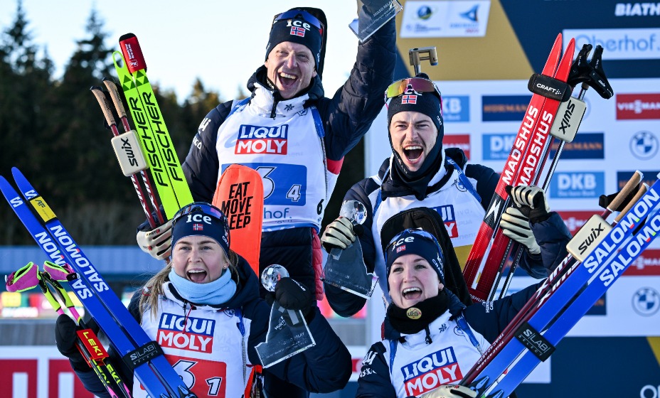 Сборная Норвегии по биатлону выиграла золото ЧМ-2023 в смешанной эстафете