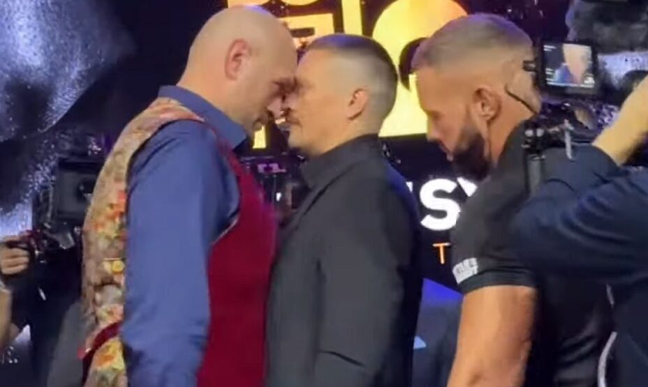 Украинец Александр Усик и британец Тайсон Фьюри встретились лицом к лицу перед боем за звание абсолютного чемпиона мира в супертяжелом весе.