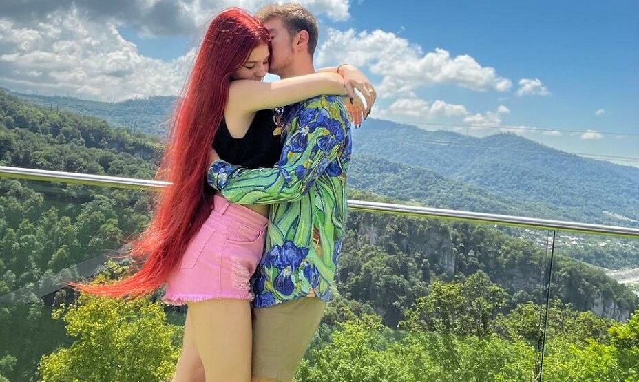 На нем Марк нежно обнимает и целует Александру на фоне живописного вида. Фотография сделана в Сочи.