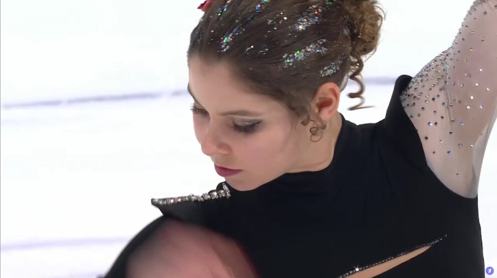 На третьем этапе Гран‑при России по фигурному катанию в Казани пара Анастасия Мишина и Александр Галлямов заняла первое место по итогам короткой программы среди спортивных дуэтов.
