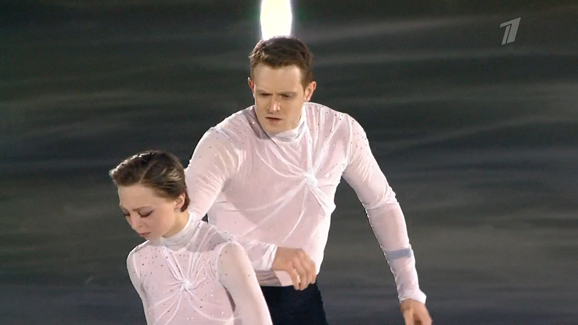 Номер начинается как обычная тренировка. Разминка, элементы — и вдруг приходит сообщение об отстранении от Олимпийских игр в Милане. Реакция Александры — полная апатия: «Я говорю, что не хочу ничего, что, наверное, нужна пауза, а, может, и вовсе стоит закончить». Дмитрий поддерживает партнёршу, и дальше пара показывает, как вместе проходят этот тяжёлый период.