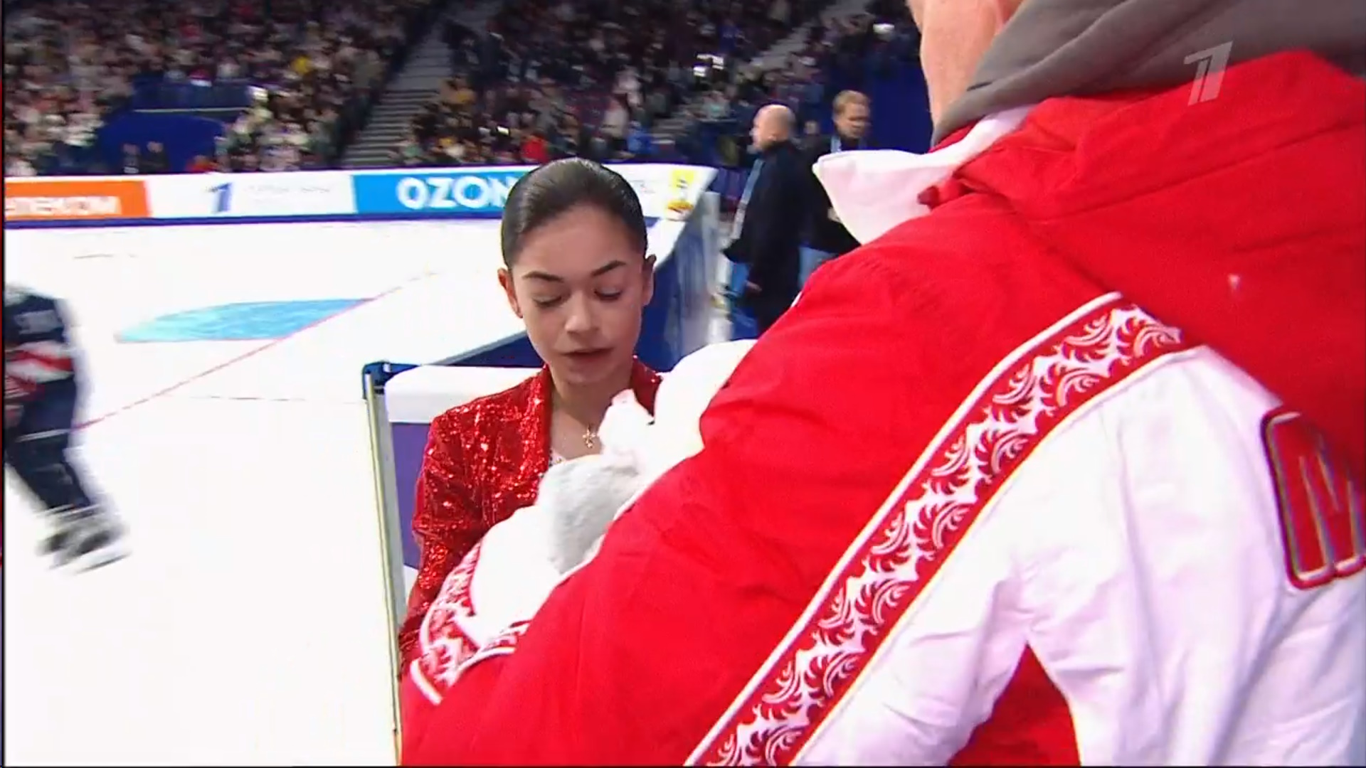 Отдельная благодарность у Аделии Петросян была в адрес болельщиков. Ее очень порадовал большой букет и золотые буквы на трибунах, которые она заметила со льда.
