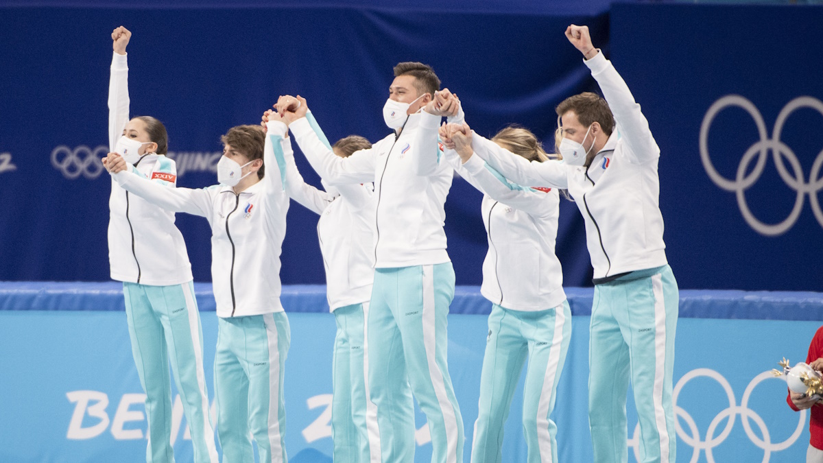 Золотые медали США присудили после того, как стало известно о положительной допинг-пробе Камилы Валиевой, сданной за два месяца до Олимпийских игр. После всех разбирательств и апелляций МОК принял решение отдать США первое место в командном турнире, Японии — второе, России — третье. А церемонию вручения наград провели в Париже у Эйфелевой башни.