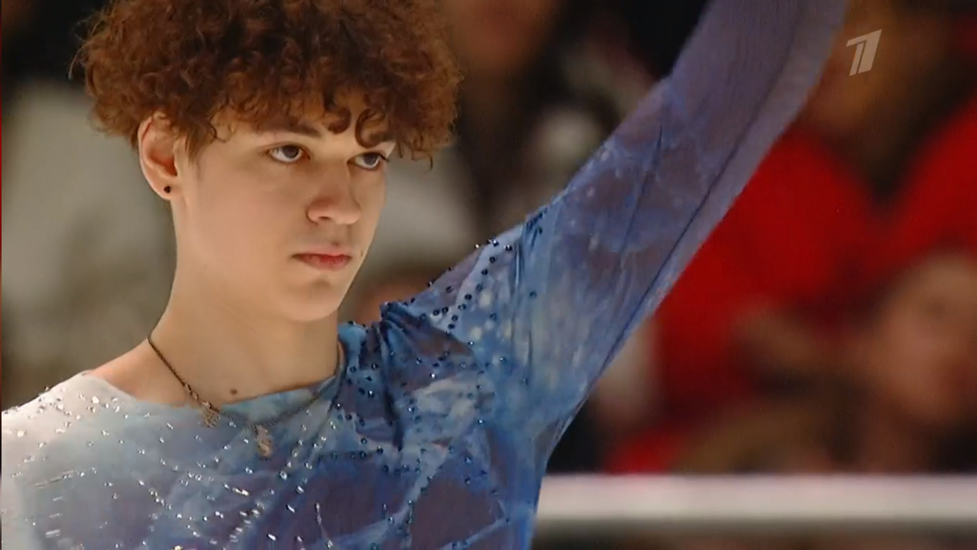 Ну и следующий на льду — юный Иван Рамзенков из команды белых, фигурист из группы Кирилла Давыденко. И из команды Алины Загитовой.