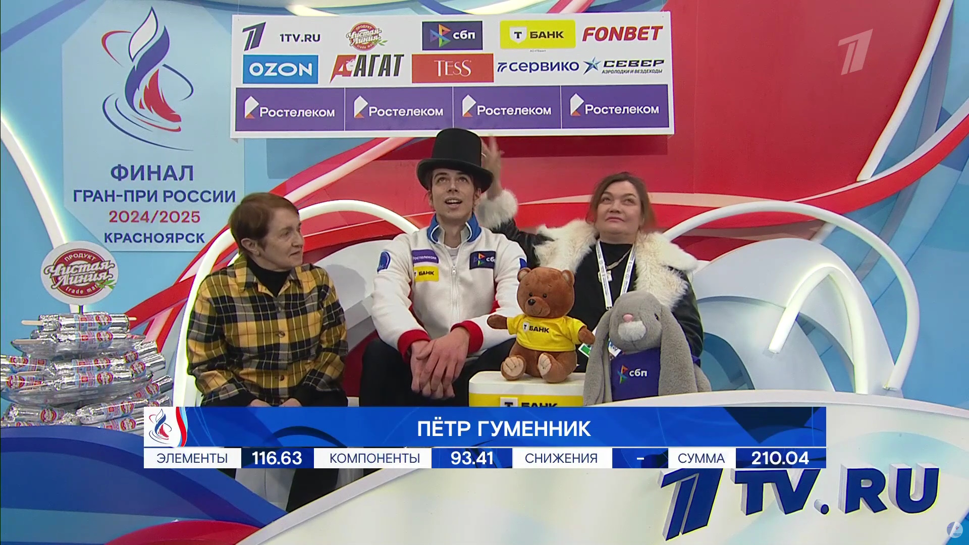 210,04 у Гуменника. ОХ! Суммарно 314,54 балла. Сихарулидзе и Лакерник, боссы федерации, схватились за голову. А в финале — Марк Кондратюк. Его выход.