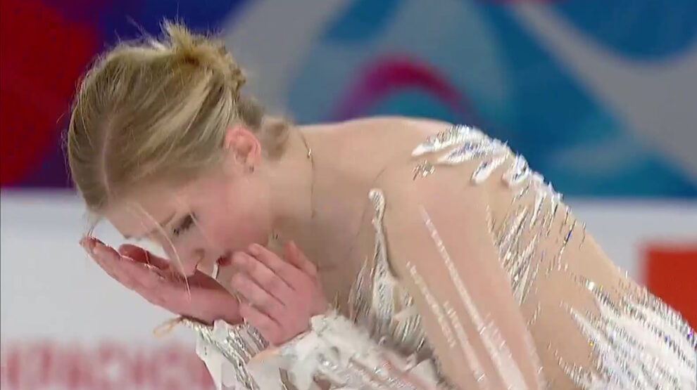 «Кошечка» Фролова начала выступление с чистого каскада тройной риттбергер — двойной тулуп. Потом — чистый тройной лутц — тройной тулуп каскад еще один, за ним тройной флип, после которого Фролова проехала у судейских столиков. После вращения 4 уровня пошла серия прыжков тройной лутц — двойной аксель — двойной тулуп. А потом и сольный тройной сальхов, за которым одиночный же тройной риттбергер. Но что по итогу у Фроловой? Заканчивается прокат и у нее 73,59 балла.