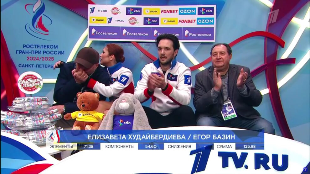 — Этот произвольный танец очень интересный, с такими находками, которые не увидишь нигде в других программах, те находки, которые ребята создали с тренерским штабом. Это прозвучало на льду Дворца спорта «Юбилейный», у них очень говорящие глаза. Вот эти взгляды они меня очень тронули, — говорит в эфире «Первого канала» Алексей Тихонов.