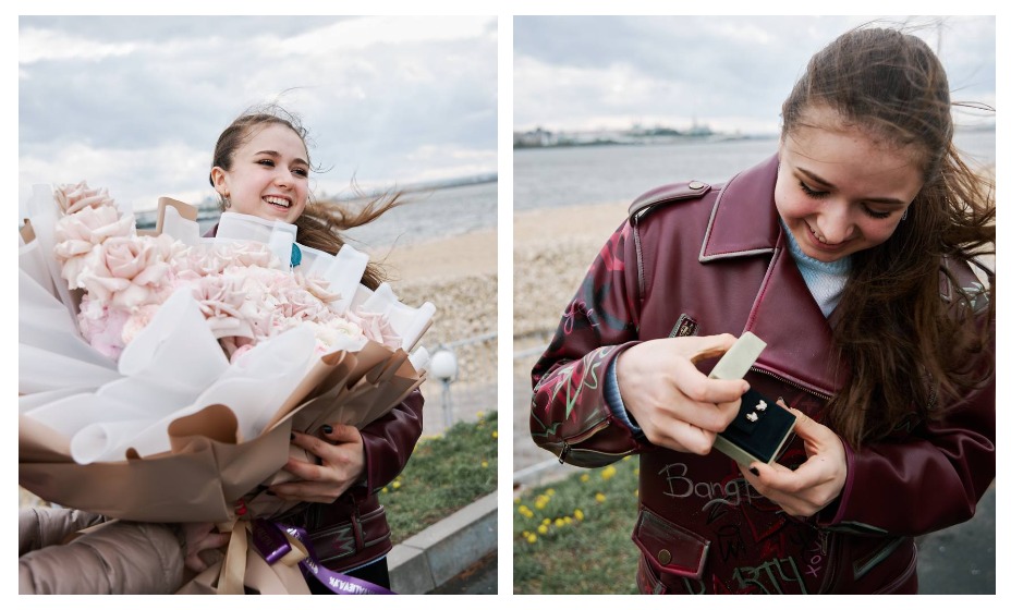 Камила Валиева получила в подарок от казанских болельщиков дорогие серьги и роскошный букет цветов