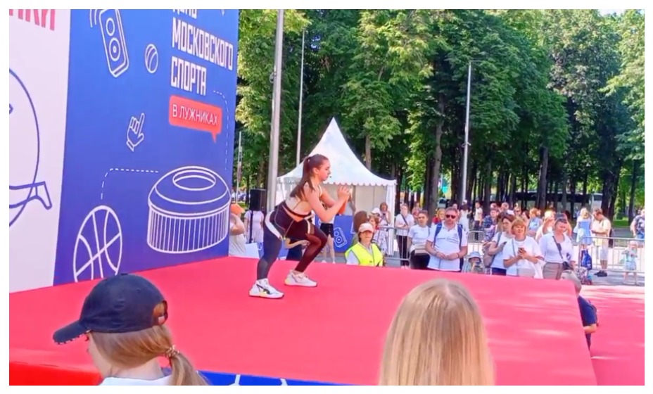 На территории московских «Лужников» олимпийская чемпионка по фигурному катанию Камила Валиева провела открытую тренировку по фитнесу в рамках Дня московского спорта.