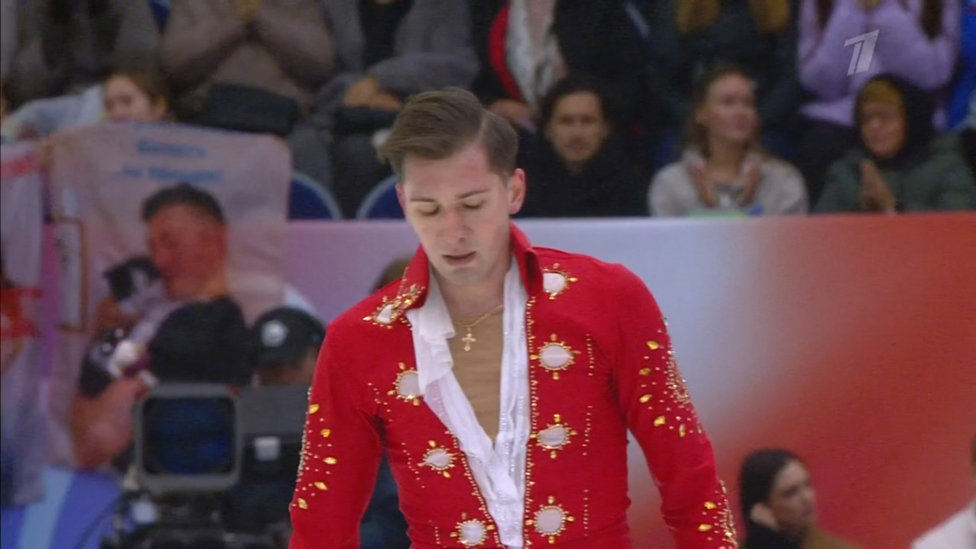 — Увы и ах, увы и ах, вот оно отсутствие предсезонной подготовки из-за травмы у Саши. И к сожалению пока не готова произвольная программа у ребят, — говорит в эфире «Первого канала» Максим Траньков.