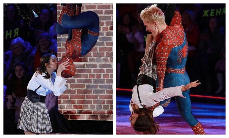 На этот раз они перевоплотились в героев комиксов Marvel. Блогер стал Человеком-пауком, а фигуристка его девушкой Мери Джейн. Выступление пары окончилось страстным поцелуем. Об этом сообщает «СЭ».