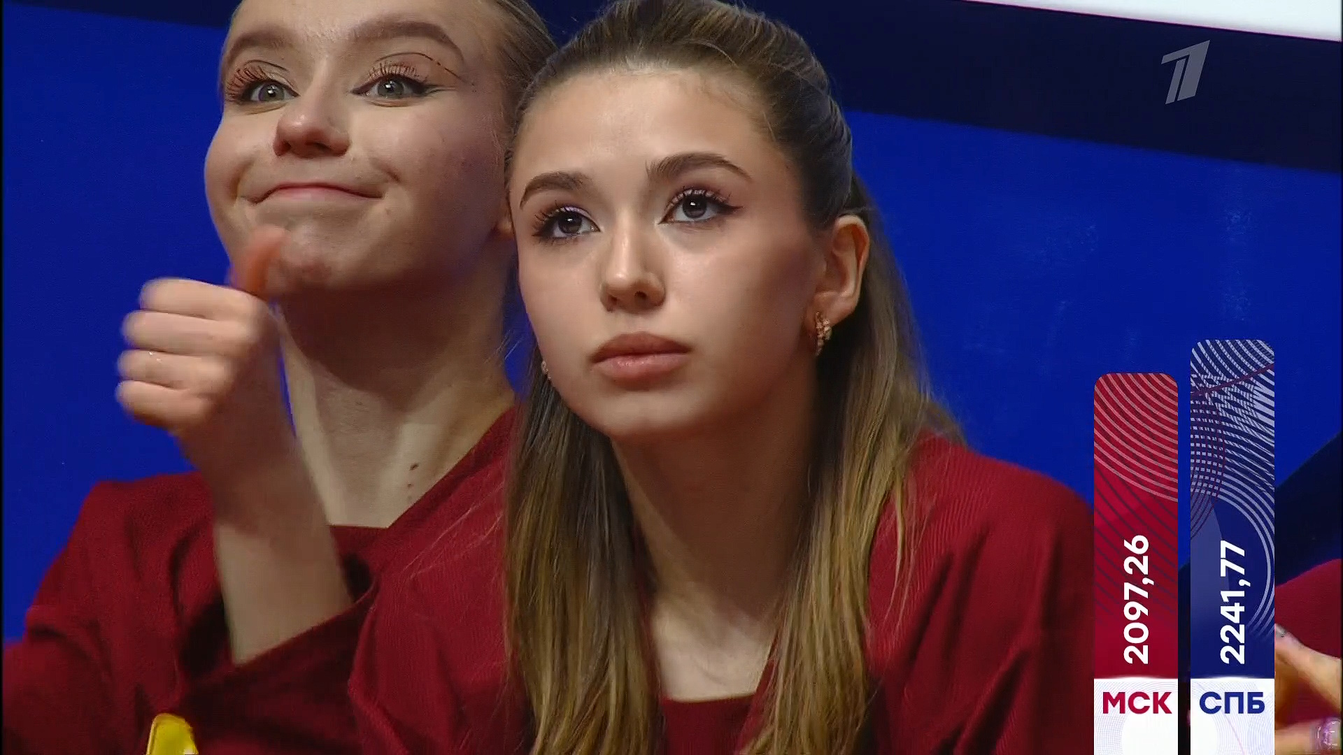 «Пять минут репетировали. Нам Светлана Владимировна [Соколовская] немного подсказывала, как нам посмотреть на судей, как нам сделать подлиннее выезд. И вот мы утром порепетировали немножко», — заявила спортсменка.