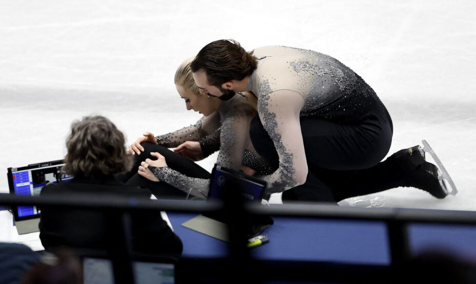 Фигуристы Эшли Кейн-Гриббл и Тимоти Ледюк не смогли завершить произвольную программу. Американцы занимали второе место после короткой программы, около балла уступая соотечественникам Алексе Книрим и Брендону Фрейзеру. Однако борьбы не получилось.