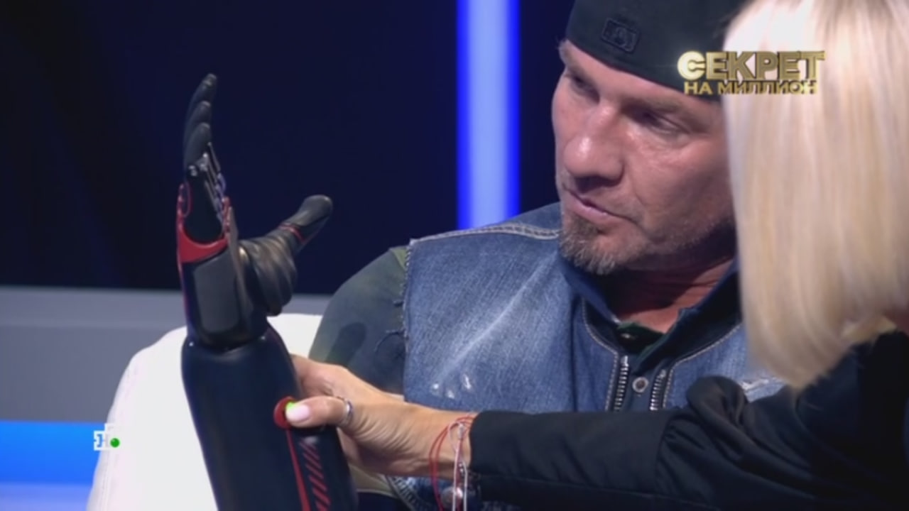 Прямо в студии программы «Секрет на миллион» Костомаров впервые публично показал протез на руку, который ему предстоит еще «разносить», «натренировать» так, чтобы можно было жить максимально возможной жизнью. Семье пришлось брать кредиты, поскольку такой протез стоит 2 миллиона рублей.