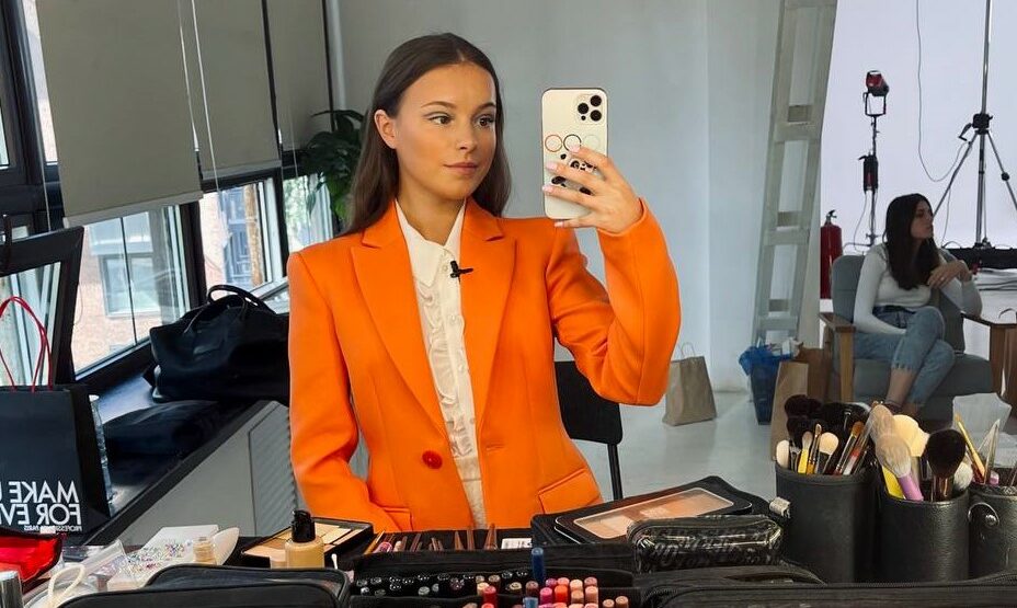 Она опубликована карточки, на которых изображена в оранжевом пиджаке. Рядом с ней стояло много профессиональной косметики, так что не стоит исключать, что спортсменка готовилась к очередной фотосессии.