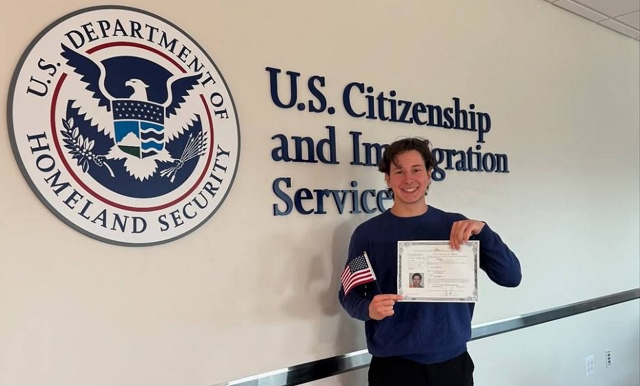 Спортсмен опубликовал в соцсетях фото с новым паспортом и флагом США, сопроводив его благодарностью партнёрше и команде.