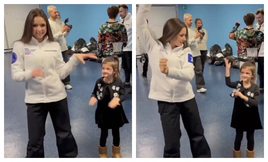 Российская фигуристка Камила Валиева станцевала вместе с маленькой дочкой Татьяны Волосожар и Максима Транькова за кулисами «Кубка Первого канала».
