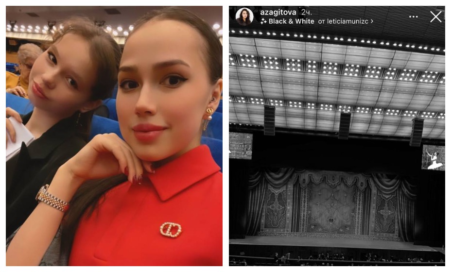 Девушки смотрели «Баядерку» в Государственном Кремлевском дворце. Загитова надела на мероприятие роскошное красное платье со строгим воротником, но с утонченной брошью Christian Dior на груди из жемчуга, делающий этот образ более мягким. Кадры с похода в театр Алина опубликовала в «сторис» аккаунта Инстаграм.