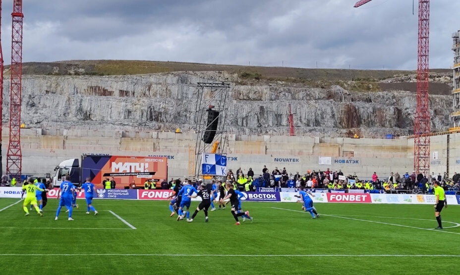 Матч Кубка России состоялся в самом необычном месте — в Белокаменке, в Баренцевом море. Точнее в сухом доке Центра строительства крупнотоннажных морских сооружений. Обычно там возводятся плавучие заводы по производству сжиженного газа. Док осушили месяц назад, потом уложили футбольное поле, на котором и сошлись кировское «Динамо» и команда блогеров 2DROTS.