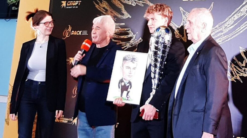 Актер Сергей Мигицко вручил награду «Эксперт года» экс-футболисту «Зенита» Владиславу Радимову. Далее же еще одна награда нашла героя — Виктор Гусев получил «Золотой микрофон» за большие заслуги. Вручила его Виктория Лопырева и замредактора «Комсомолки» Павел Садков.