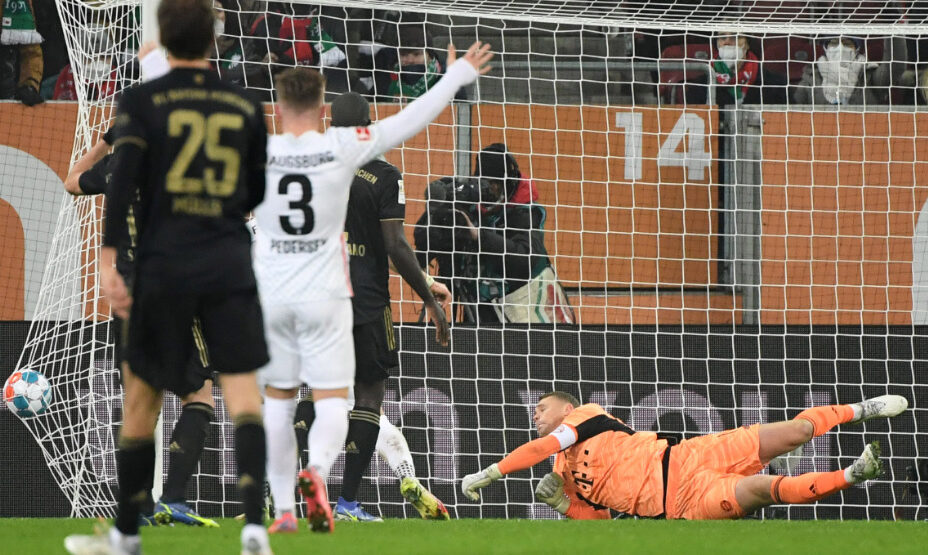 Мюнхенская «Бавария» в гостях неожиданно уступила в матче 12-го тура чемпионата Германии против «Аугсбурга». Лидеры сезона пропустили два мяча в первом тайме, но ответили лишь одним голом Роберта Левандовски.
