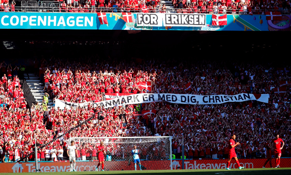 Болельщики сборной Бельгии и Дании перед матчем второго тура группового раунда чемпионата Европы-2020 вывесили на трибунах огромный баннер в поддержку Кристиана Эриксена, который пережил остановку сердца. Сейчас футболист находится в клинике, его здоровью ничего не угрожает.