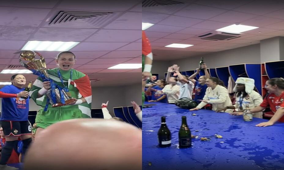 Российский футбольный союз опубликовал кадры из раздевалки женской команды ЦСКА после победы над «Зенитом» в финале Кубка России.