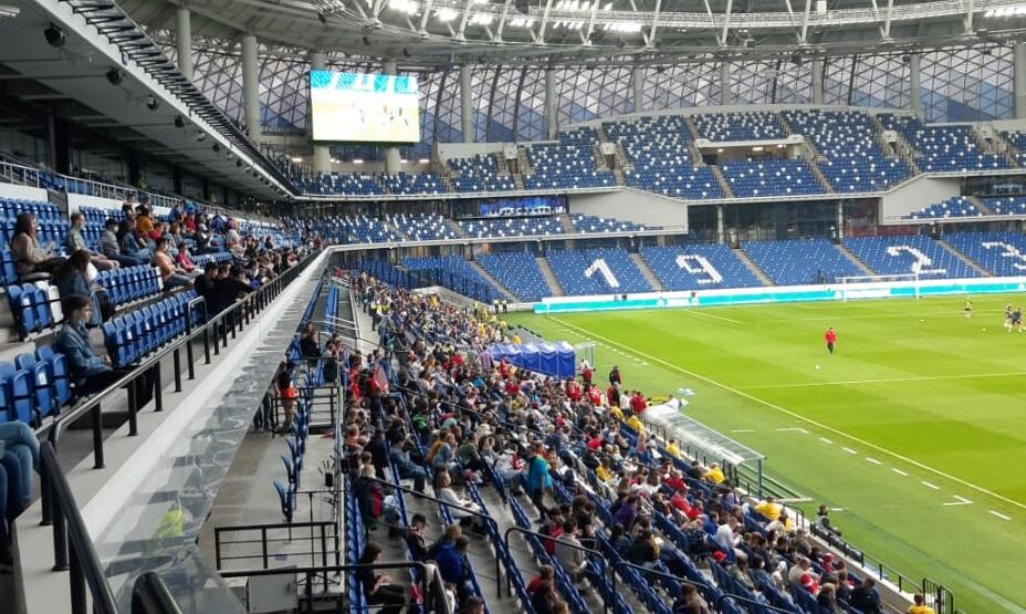 На трибунах собралось много детворы — самые искренние футбольные болельщики. Мальчики принесли плакаты «Дзюба — лучший! Россия, вперед!». Девочки рисовали на щеках флаг России. Но кто-то прагматично малевал плакаты с просьбой футболистам подарить им футболку.