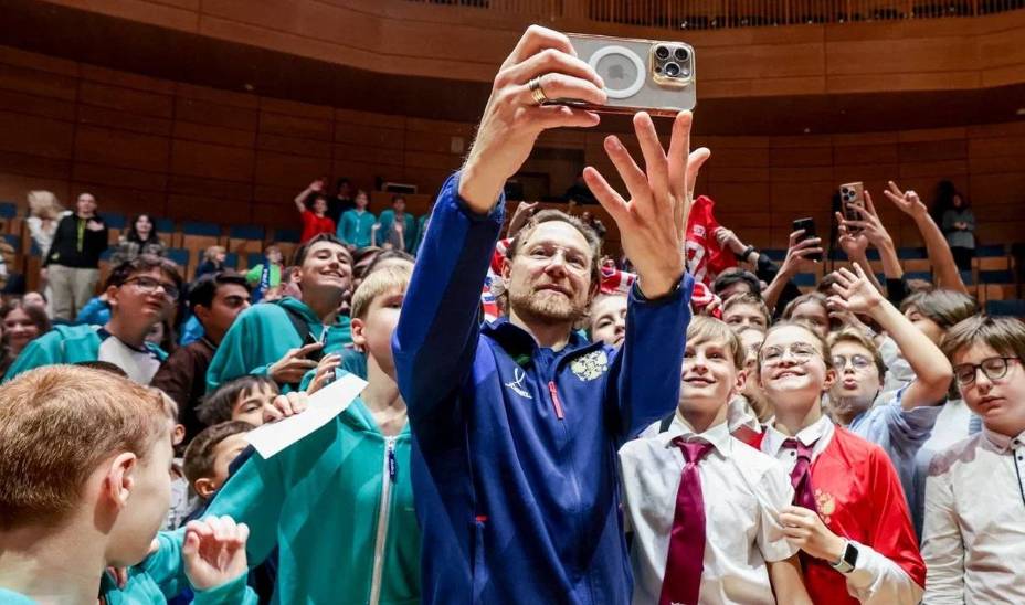 В Сочи и «Сириусе» медийные дни первой команды страны продолжились. Валерия Георгиевича привели в зал, где собрались местные школьники. Как не странно, их вопросы зашли Карпину больше: