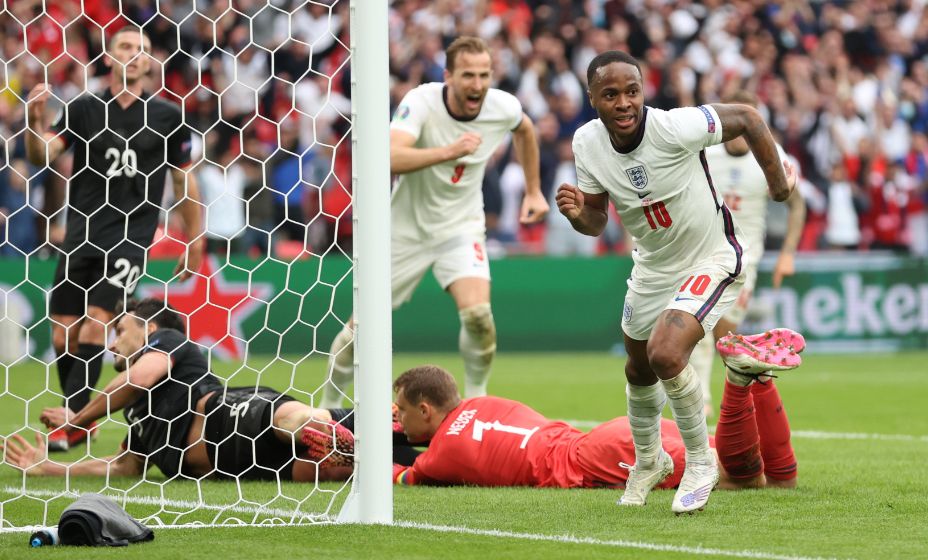Нападающий Рахим Стерлинг забил три мяча сборной Англии на этом Евро. Бомбардир испугался в первое мгновение после гола немцам: