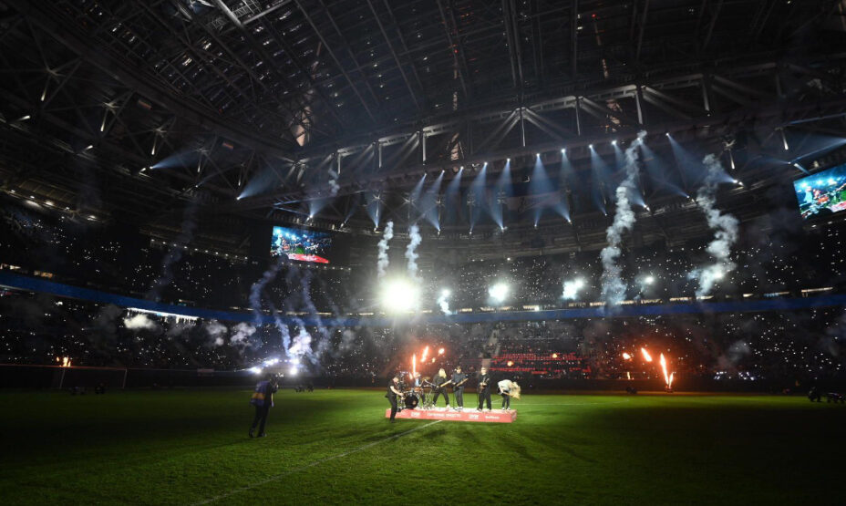 Вот уже три с лишним года матчи сборной России — это прежде всего шоу. Очень качественное перед самим играми, с лучшими артистами. С онлайн-шутками Валерия Карпина на предматчевых конференциях. С гимном в исполнении самых ярких звезд, фейерверками и гигантскими флагами.