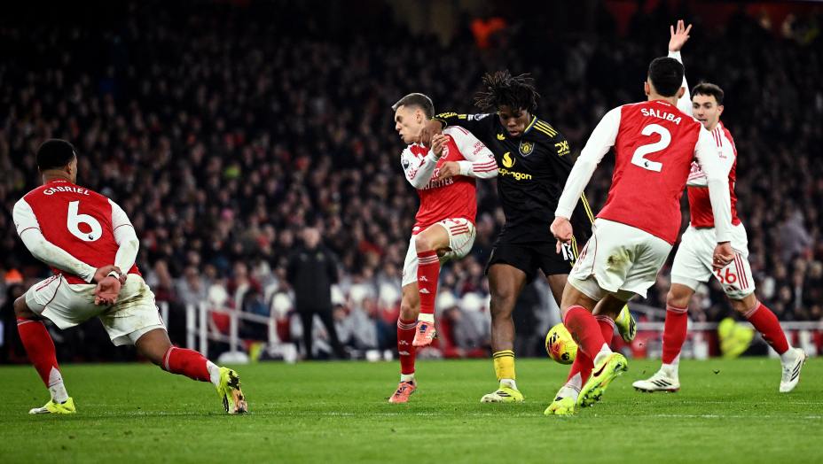 С первых минут матча все шло по сценарию «Арсенала». Команда Микеля Артеты установила тотальный контроль, оттеснив гостей к своей штрафной. 72% владения мячом, серия угловых и первый серьезный момент на 18-й минуте: удар головой Мартина Субимменди был парирован голкипером «Юнайтед» Бартом Ламменсом.