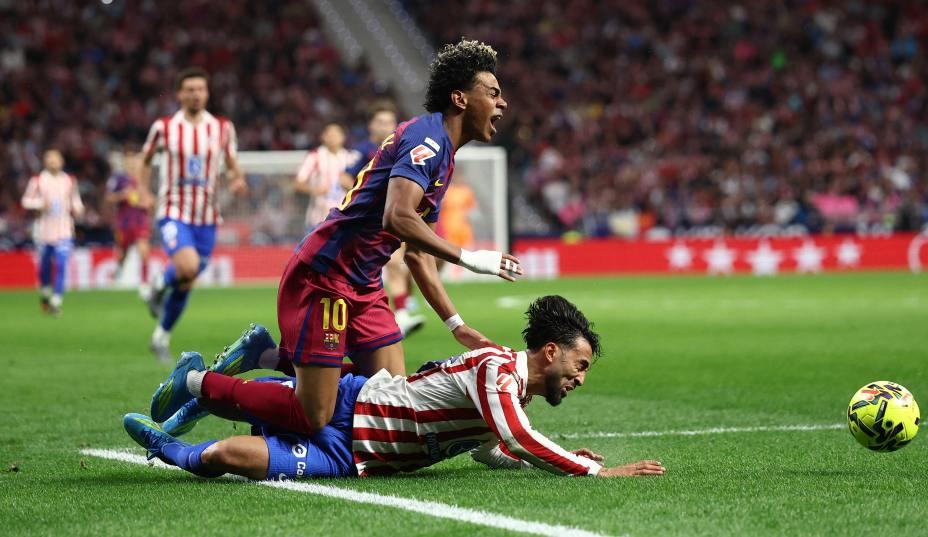 Игра началась без разведки. Уже на 3-й минуте Ламин Ямаль замыкал прострел Жоао Канселу, но угодил в Нико Гонсалеса. «Атлетико» ответил моментом Гризманна на 11-й минуте — Антуан обыграл двух защитников, но пробил прямо в руки вратарю. А затем каталонцы на 14-й минуте чуть было не забили: Фермин Лопес ворвался в штрафную и мяч после уго удара прошел рядом со штангой.