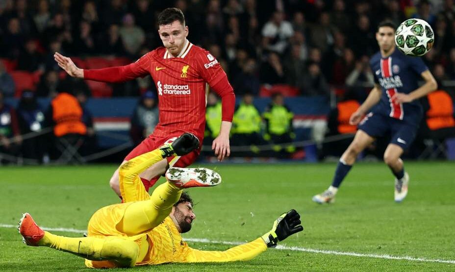 Матч на «Парк де Пренс» начался с атак «ПСЖ». Ударное трио парижан Барколя – Дембеле – Кварацхелия затерзала «Ливерпуль». Нападающие «ПСЖ» менялись местами, запутывая соперников, Барколя. Угрозы ворота Алиссона возникали то слева, то справа, то по центру. А поддерживали Кварацхелию и его друзей по линии атаки и Витинья, и Фабиан Руис и Хакими.