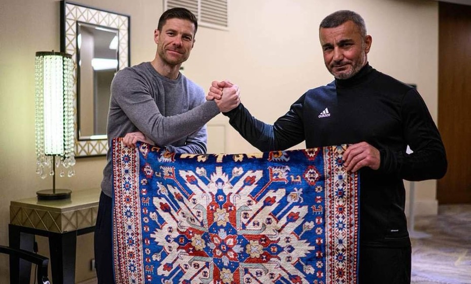 Главный тренер футбольного клуба «Карабах» Гурбан Гурбанов подарил своему коллеге из «Байера» Хаби Алонсо карабахский ковер.