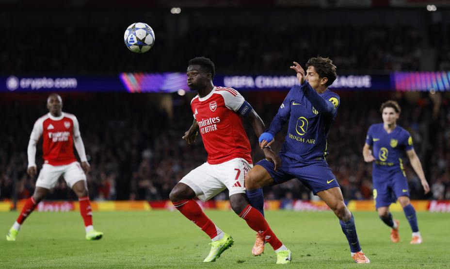 Первый тайм матча Лиги чемпионов между «Арсеналом» и «Атлетико» стал образцовой игрой в кошки-мышки. Лондонцы, верные своему стилю, контролировали мяч и создавали моменты: Сака был опасен на фланге, а Эзе с рикошетом от ноги соперника поразил перекладину уже на 5-й минуте.