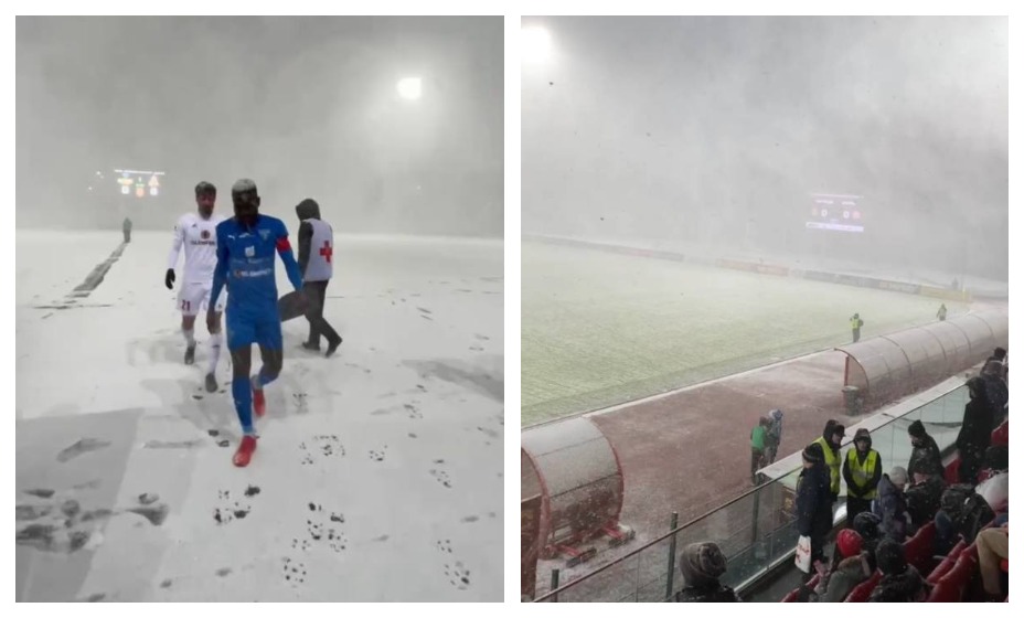 Снежный циклон накрыл матч «Торпедо» с тольяттинским «Акроном». Главный арбитр встречи, который едва мог разглядеть футболистов за пеленой снега, остановил матч на 11-й минуте.