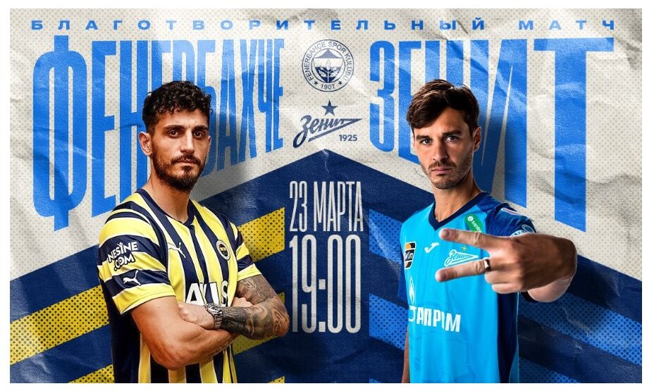 В четверг, 23 марта, в Стамбуле будет сыгран благотворительный матч между «Фенербахче» и «Зенитом». Матч «Фенербахче» — «Зенит» посмотреть бесплатно в прямом эфире можно будет на канале «Матч! Премьер», начало трансляции в 18:55 по московскому времени.