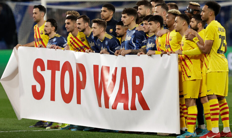 «Барселона» в ответном матче 1/16 финала Лиги Европы гостит в Италии, где играет против «Наполи». Перед началом противостоянии соперники продемонстрировали на камеры огромный баннер.