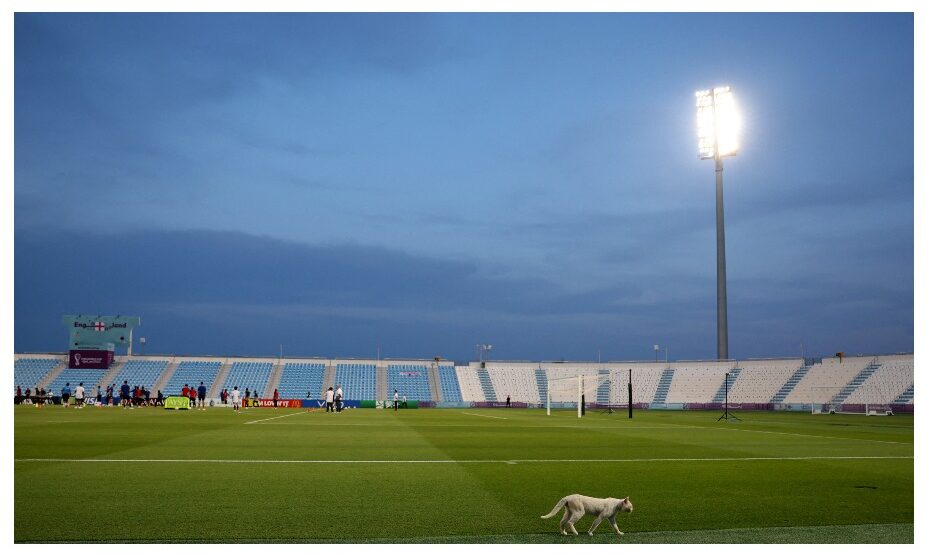 Защитники «Манчестер Сити» и сборной Англии Джон Стоунз и Кайл Уокер подружились с бездомным котом, которого встретили на тренировочной базе команды в городе Аль-Вакра.
