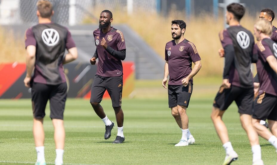 Защитник сборной Германии Антонио Рюдигер жестко подкатился под нападающего Никласа Фюллкруга и спровоцировал стычку на тренировке.