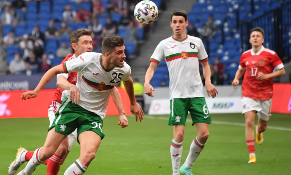 Команда Станислава Черчесова с первых минут завладела инициативой. Но могла и пропустить гол в дебюте встречи. На 4-й минуте Момчил Цветанов опасным ударом проверил Шунина на прочность, Антон успел среагировать. Сборная России ответила проходом Романа Зобнина, который протащил мяч до линии штрафной и нанес удар, но выше ворот. Еще один яркий момент хавбек «Спартака» упустил ближе к концу первого тайма. Артем Дзюба сделал скидку Зобнину, а тот пробил низом, но прямо по центру ворот, где и находился Иван Караджов. На перерыв команды ушли при 0:0 на табло.