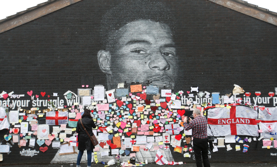 Граффити с Рэшфордом в Манчестере осквернили, но затем украсили сердечками