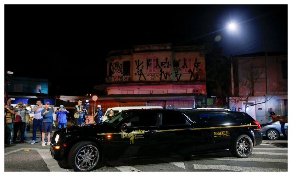Кортеж с гробом тела Пеле подъехал к стадиону «Сантос» в Сан-Паулу
