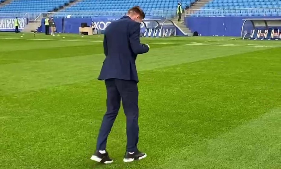 Роман Ежов решил опробовать газон домашней арены оригинальным способом
