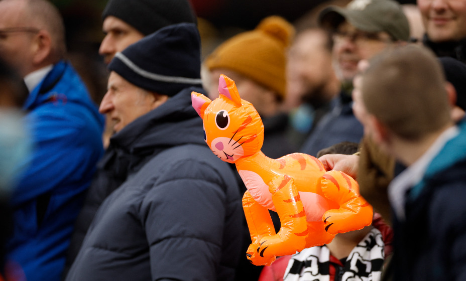 Футбольные болельщики «Ньюкасл Юнайтед» принесли с собой на матч 26-го тура чемпионата Англии по футболу с «Вест Хэмом» надувных котов.