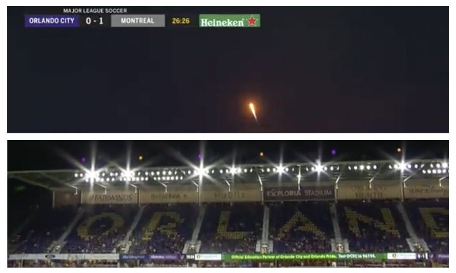 Момент запуска произошел во время матча «Орландо» — «Монреаль». Футболисты проводили матч регулярного чемпионата MLS, когда в небе резко появилась яркая вспышка. В этот момент арбитры приняли решение приостановить матч, чтобы посмотреть на историческое событие.